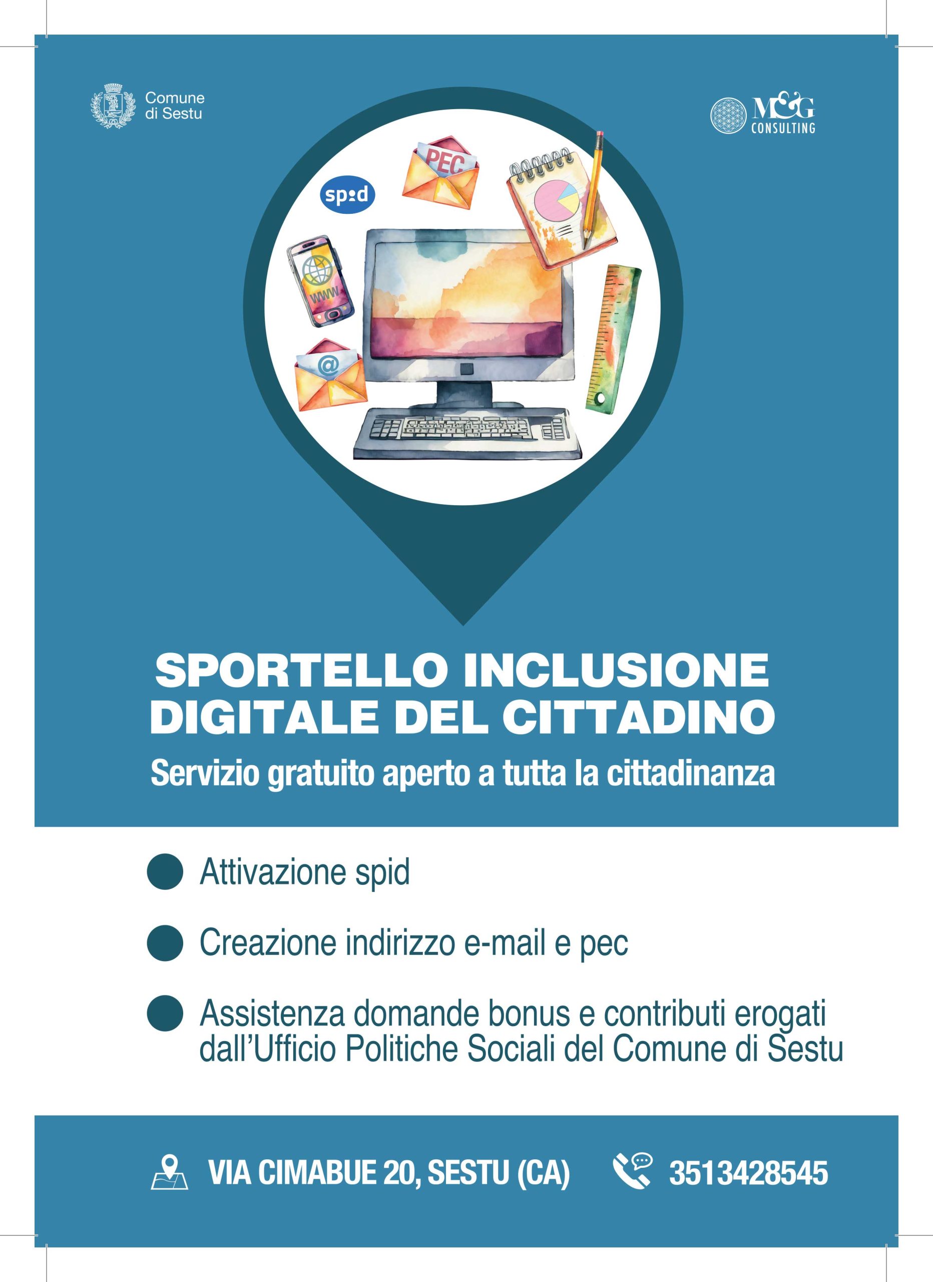 L’obiettivo del Servizio di Inclusione Digitale è di accompagnare in modo personalizzato, rispetto alle esigenze o al livello di conoscenza del singolo utente, le persone maggiormente a rischio di esclusione sociale nella gestione informatizzata delle istanze e relativa documentazione, per l’attivazione di interventi di natura socio- assistenziali gestiti dal Settore Politiche Sociali del Comune di Sestu, tramite la piattaforma telematica denominata “La Stanza del Cittadino” all’interno del sito internet istituzionale del Comune di Sestu.